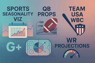 Sports Seasonality Viz. QB Props. Team USA WBC. G+. WR projections.